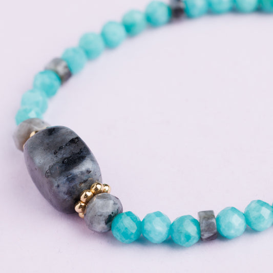 Bracelet acier inoxydable or - Amazonite et Labradorite - SIA