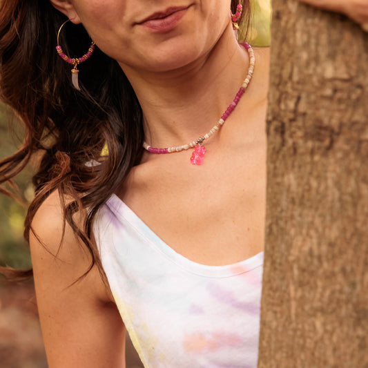Créole or - Jade - Dent quartz rose - MAYA – Que Gemmes