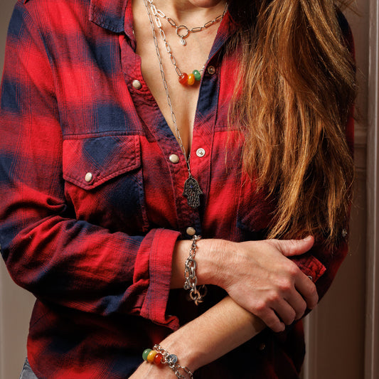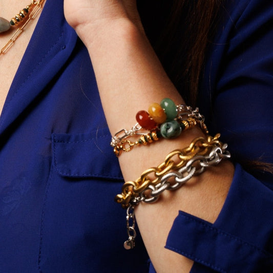Bracelet maille plaqué argent - Aventurine - Cornaline - Jade - CARO
