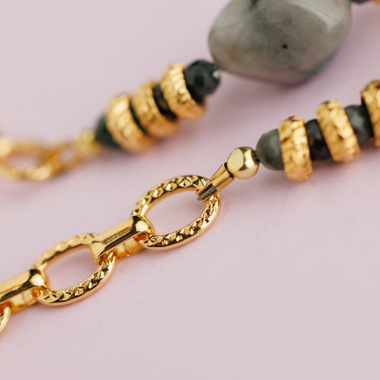Bracelet double rang en maille or - Onyx vert - Quartz - Améthyste - INDIANA