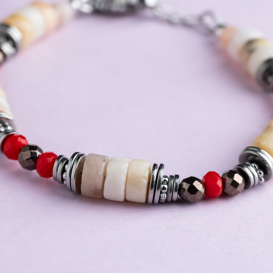 Bracelet argent - Opale - Hématite et jade - RITA