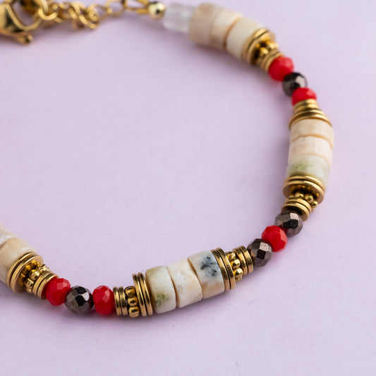 Bracelet or - Opale - Hématite et jade - RITA