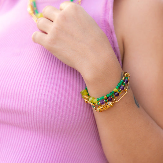 Bracelet double rang en maille or - Onyx vert - Quartz - Améthyste - INDIANA