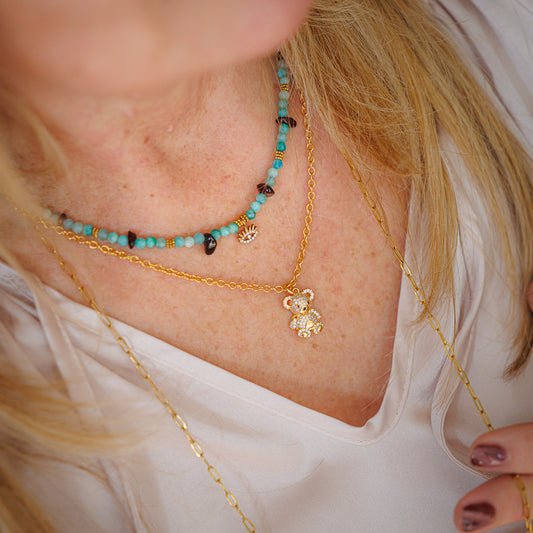 Collier argent - Heishi - Ours bleu - HARIBO