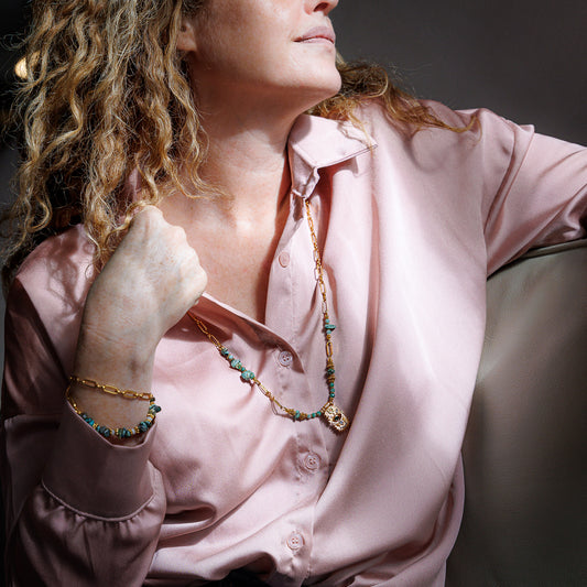 Collier or - Turquoise et émeraude - EWAH