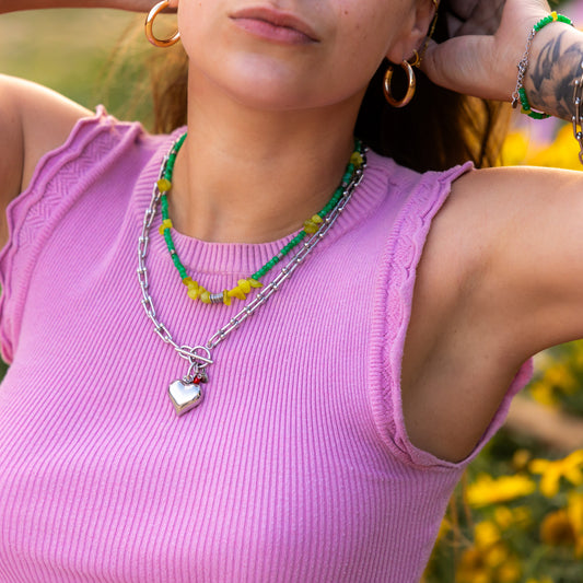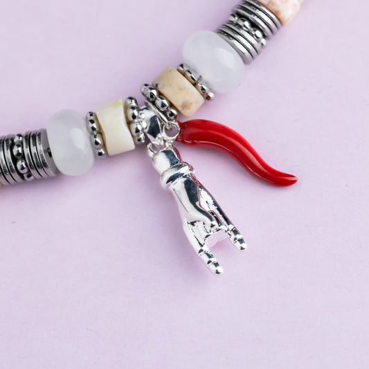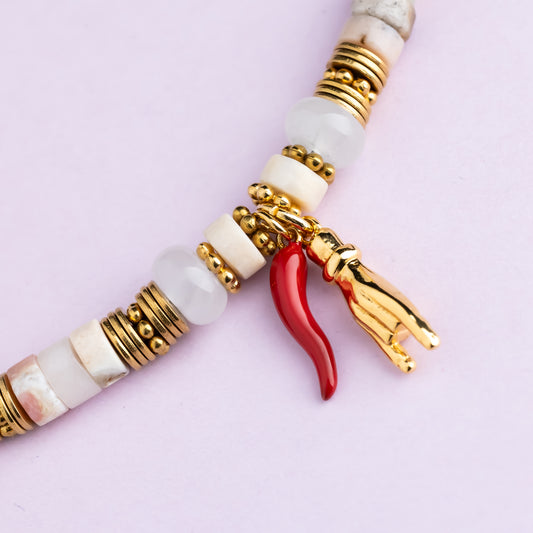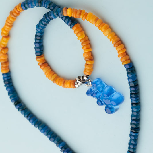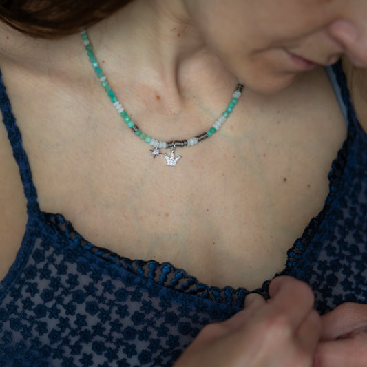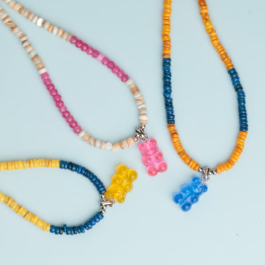 Collier argent - Jade et Heishi - Ours rose – HARIBO