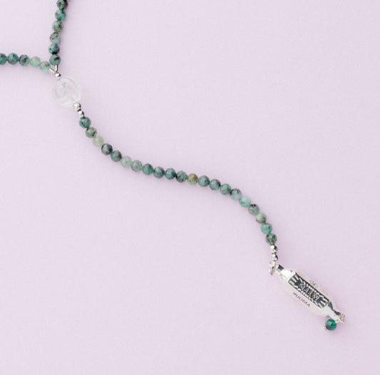 Collier plaqué rhodium - Emeraude - Talisman - CASSIE