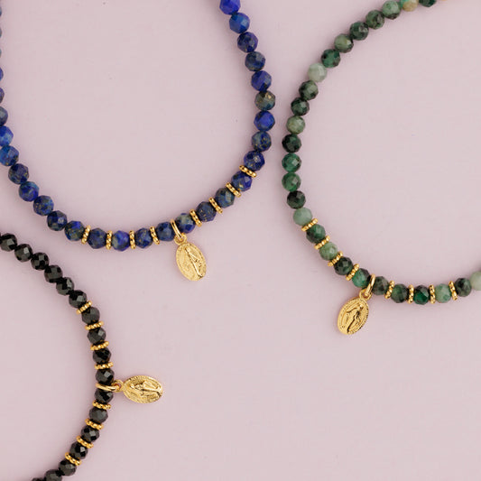 Bracelet or - Hématite - Médaille miraculeuse - MARIA