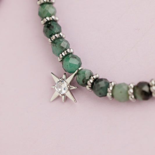 Bracelet plaqué rhodium - Emeraude - Etoile -STELLA
