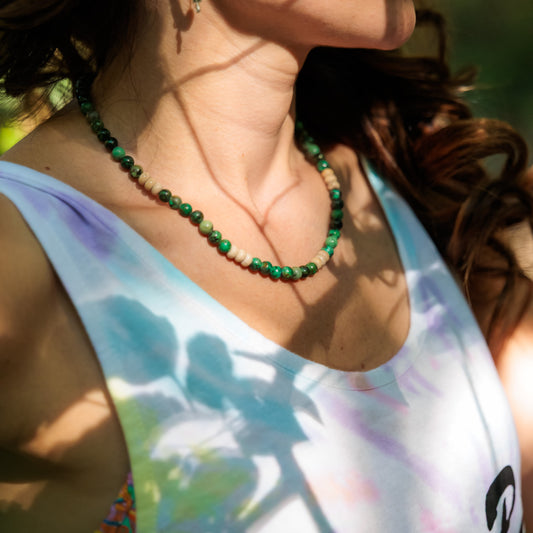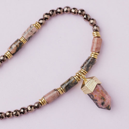 Sautoir argent - Quartz fumé - Larimar et jade - ALEXIS