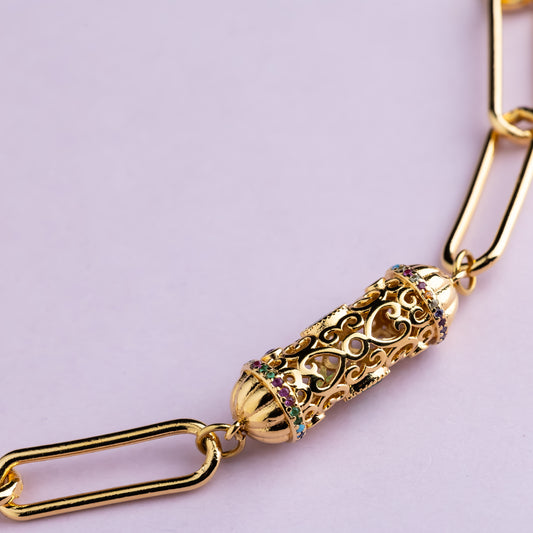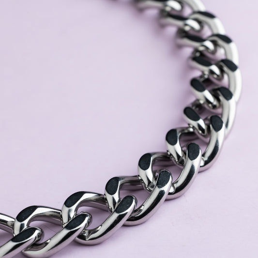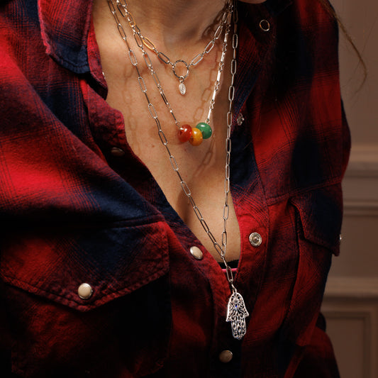 Sautoir maille en acier inoxydable - Argent - Main - FATIMA