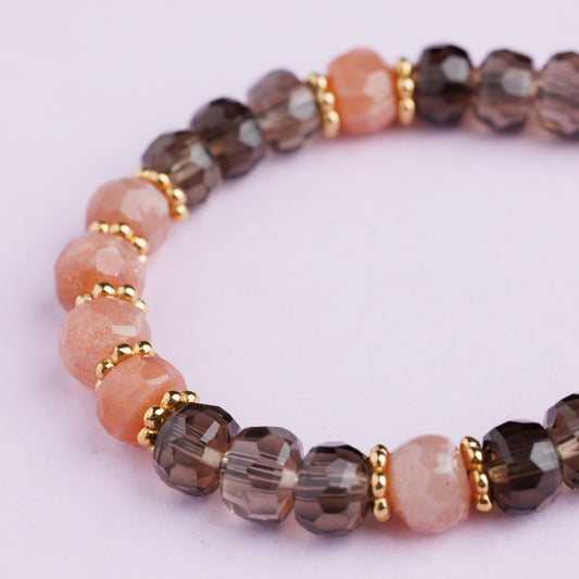 Bracelet acier inoxydable or - Quartz fumé et Pierre de Lune -LOLA