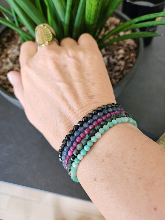Bracelet plaqué rhodium - Spinelle et émeraude - Emeline
