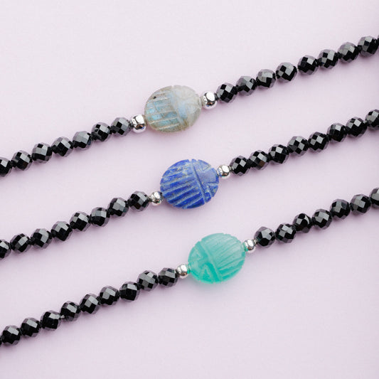 Bracelet plaqué rhodium - Spinelle et labradorite - EMMA