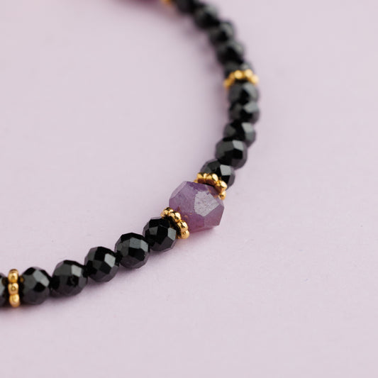 Bracelet plaqué rhodium - Spinelle et onyx - EMMA