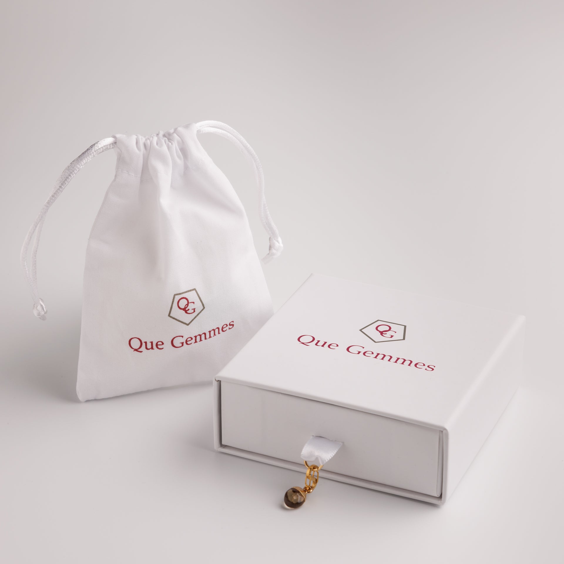 Tous les articles achetés chez Que Gemmes sont livrés dans une boîte bijoux appropriée et pochette de protection.