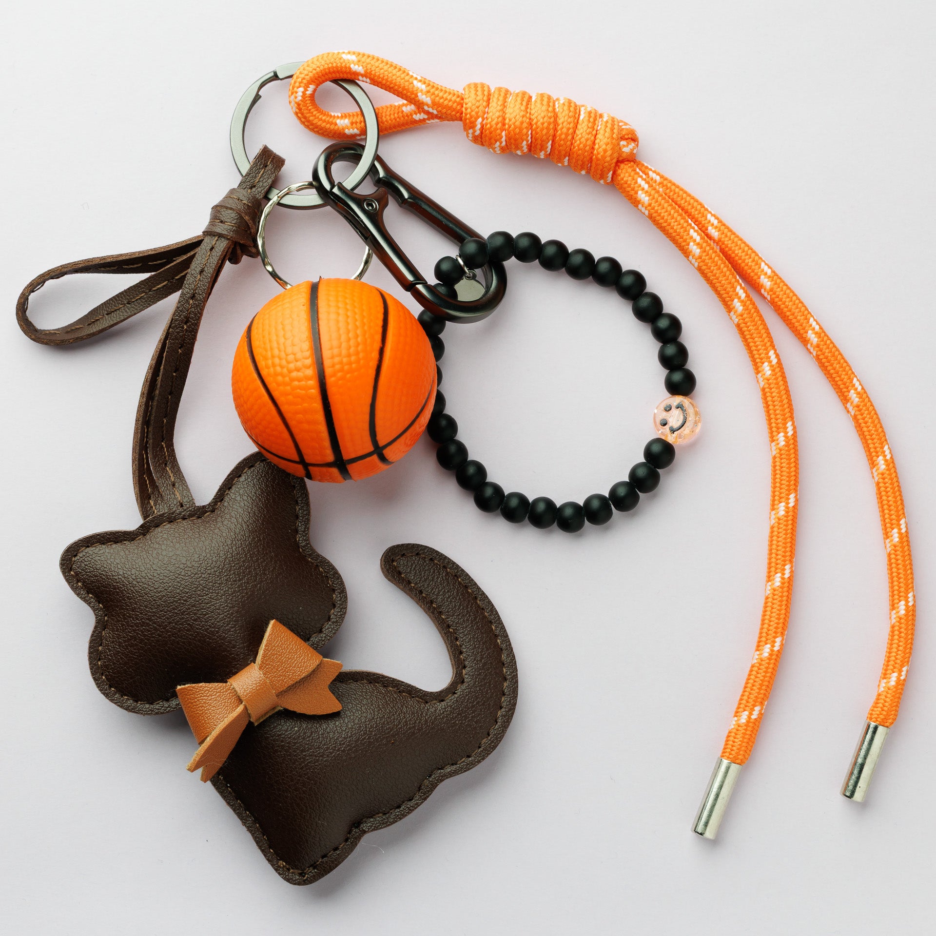 Chat, cordon et ballon assortit d'un bracelet en pierres fines œil de tigre.