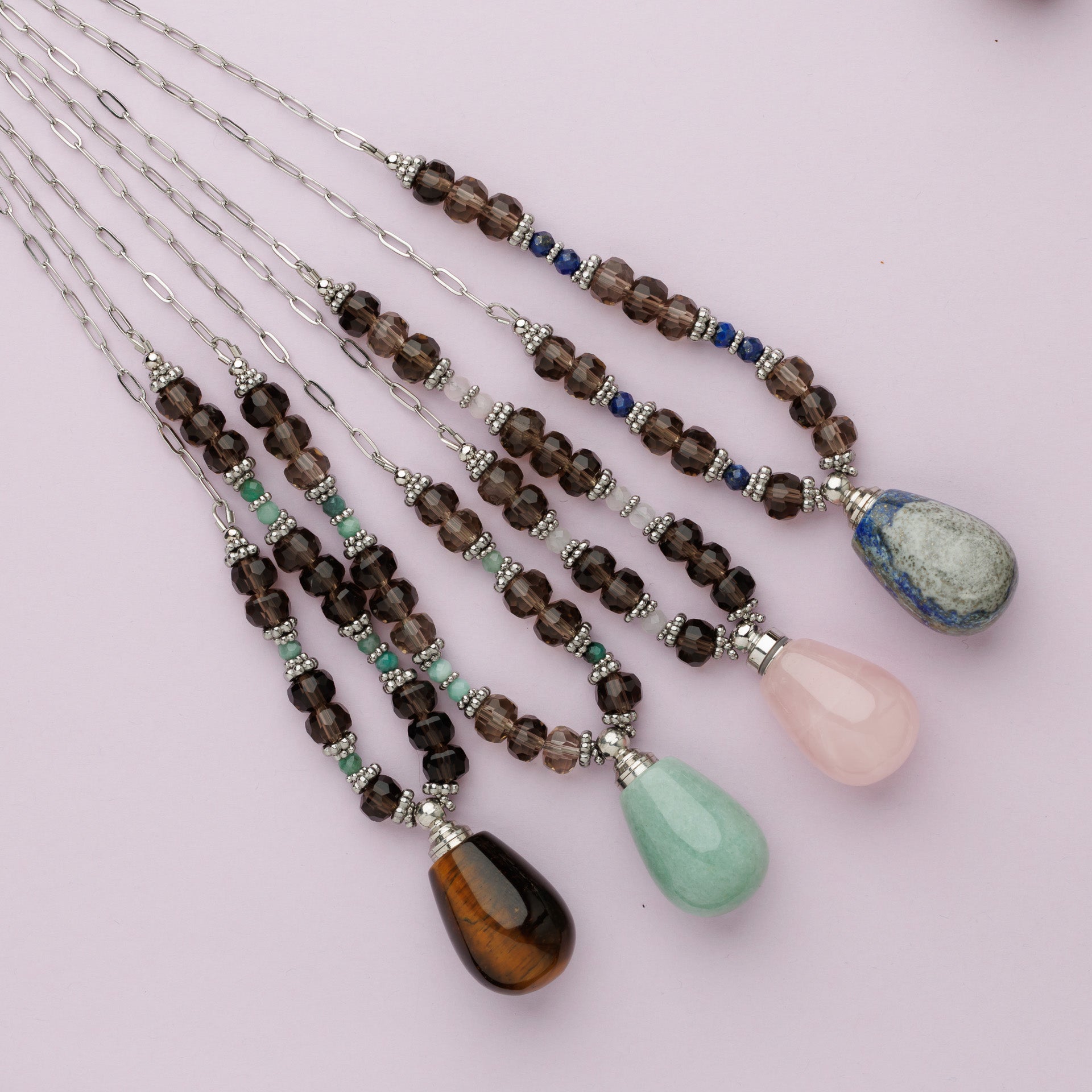 Le plus du collier : La fiole (vendue avec une pipette) vous permet d'y insérer votre parfum préféré ou des huiles essentielles.