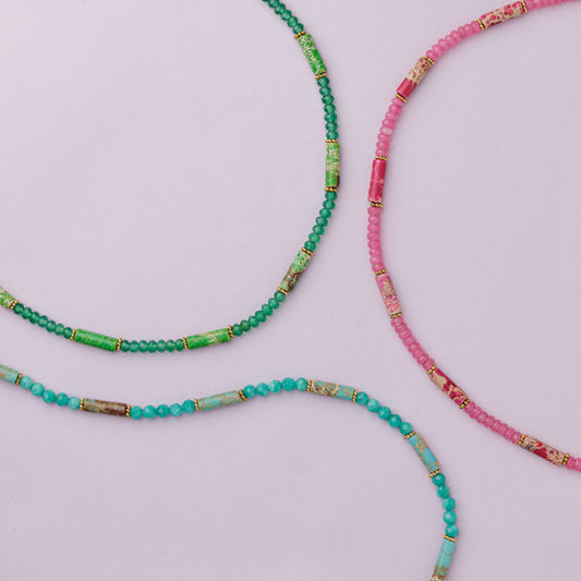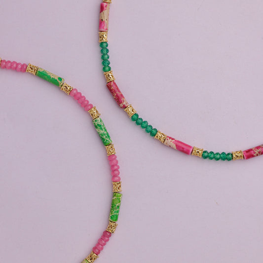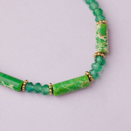 Collier or - Onyx vert et jaspe - ACAPULCO